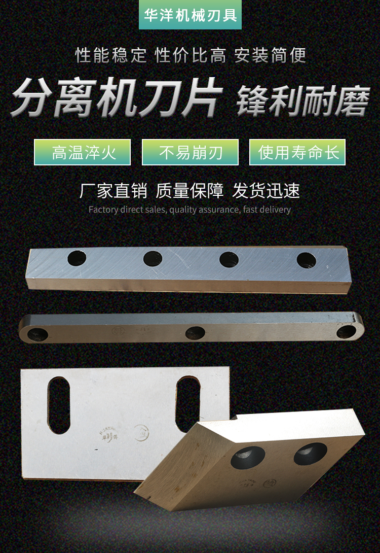 HY系列分離機刀片選用9CrSi、D2、SKD-11、SKH-51、H13等材質,采用CNC數(shù)控加工工藝,并進行熱處理。